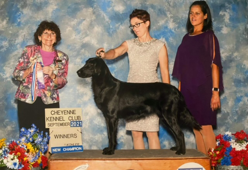 フラットコーテッドレトリーバーにおきましては、アメリカで開催されているFCRSA National Specialtyで現地ブリーダーに認められた女の子を選ばせてもらい譲っていただきました。フラットについてはアメリカ系、ノーフォークテリアにはイギリス系の血統に拘りを持ち、自分の中での理想を求め、ブリーディングを実施しております。